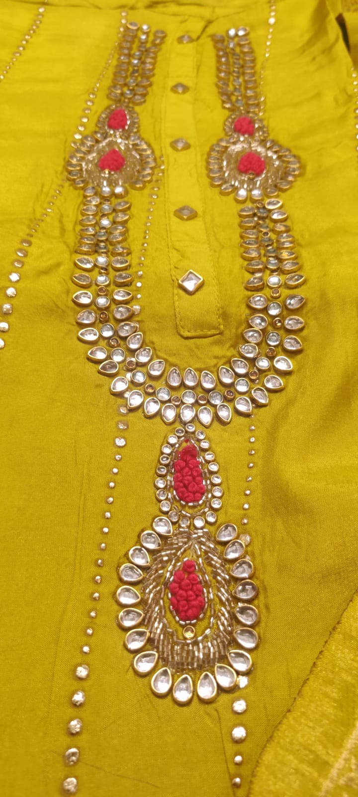 Yellow Silk Salwar suit material with Banarasi Duppatta-BEGU001SS
