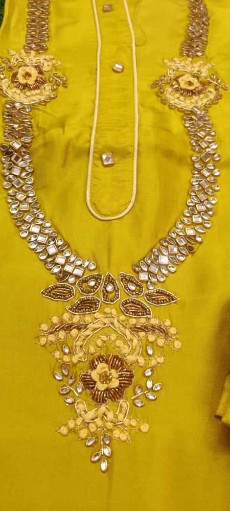 Yellow Silk Salwar suit material with Banarasi Duppatta-BEGU001SS