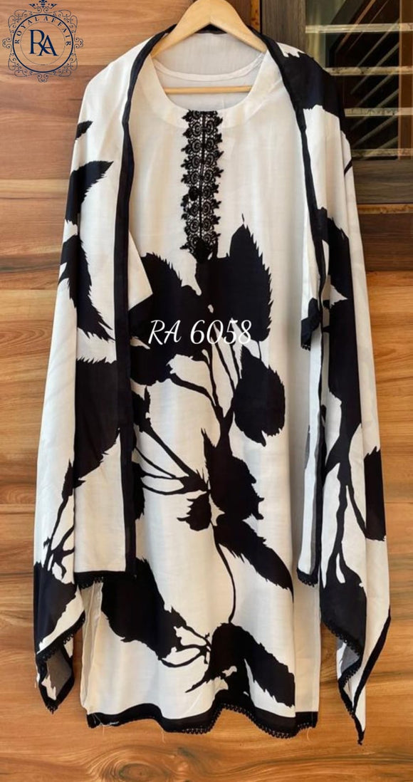 Royal Affair presents pure muslin semi stitched shirt with beautiful print plus crochet lace pattern on neck -FOF001SSMBW