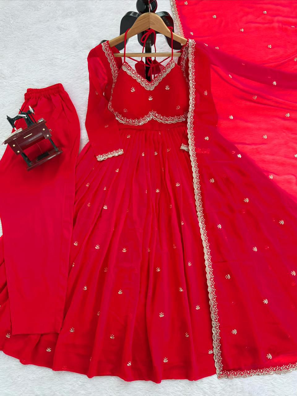 Sh T Launching New  Showcasing  Premium Brand Wear Red Georgette Anarkali Suit with Duppatta -TREND001RA
