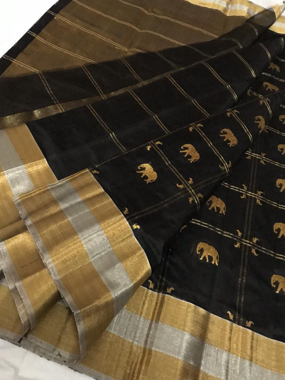 BLACK CHANDERI SILK COTTON SAREE FOR WOMEN-SACSCSW002