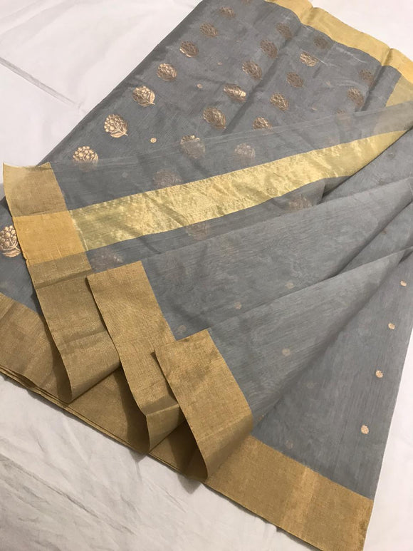 GOLD & SILVER WAVES ORIGINAL AUTHENTIC CHANDERI SILK AND COTTON SAREE FOR WOMEN-SACS0012