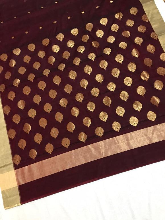 PEACOCK FEATHER DESIGN ORIGINAL AUTHENTIC CHANDERI SILK & COTTON SAREE FOR WOMEN -PFCSCSW001