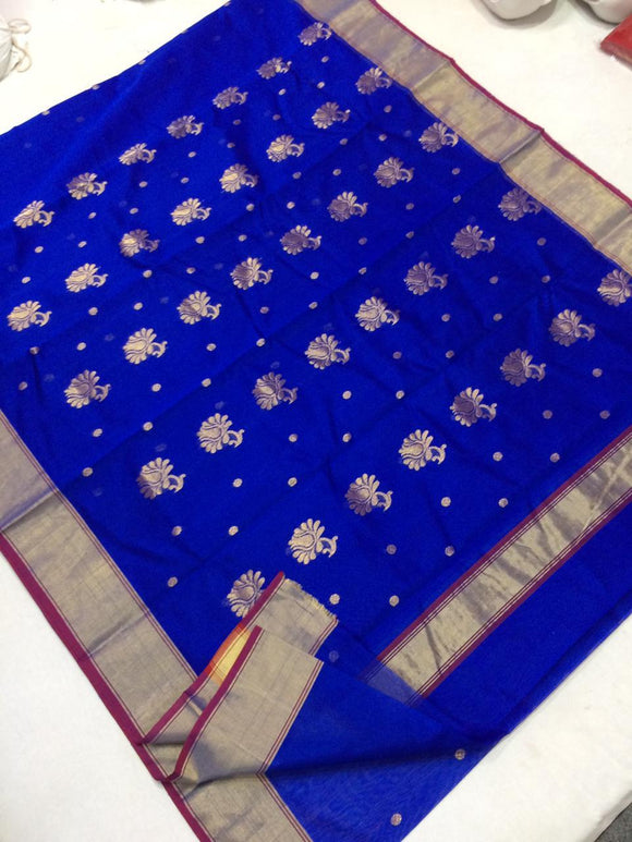DEEP BLUE PAISLEY DESIGNER CHANDERI SILK COTTON SAREE FOR WOMEN-SADBCS001
