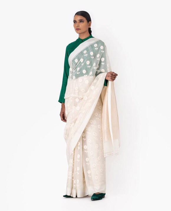 WHITE ORIGINAL CHANDERI SILK AND COTTON SAREE FOR WOMEN -SACSSW001W