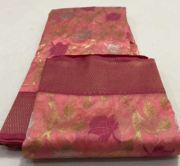 SOUNDARYA, ONION PINK CHANDERI SILK SAREE FOR WOMEN -SA001OP