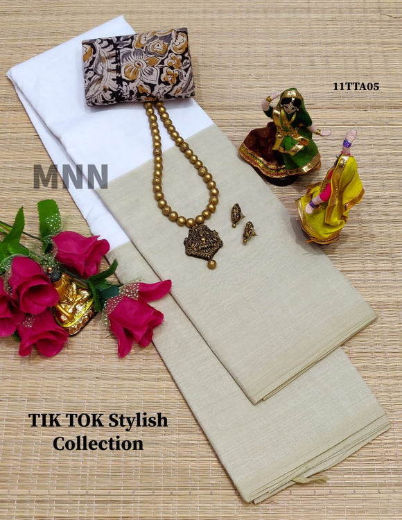 TIK -TOK COLOUR CONCEPT CHETTINAD SAREE WITH JEWELLERY COMBO-KMSG3SW001