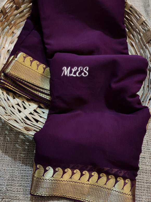Chiffon blend Georgette Saree with Resham weaving border and striped Pallu-MLES001