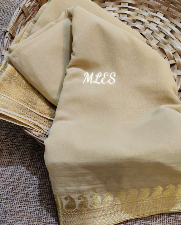 Golden Cream color Awesome kanji mango design Chiffon Saree with Grand Pallu and Designer Brocade Blouse -21ETCS003