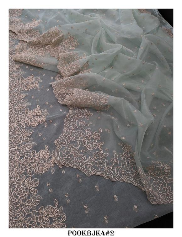 Pastel Green , Christmas Special White shade Point Embroidered Organza Saree with Blouse Piece-KIA001PGO