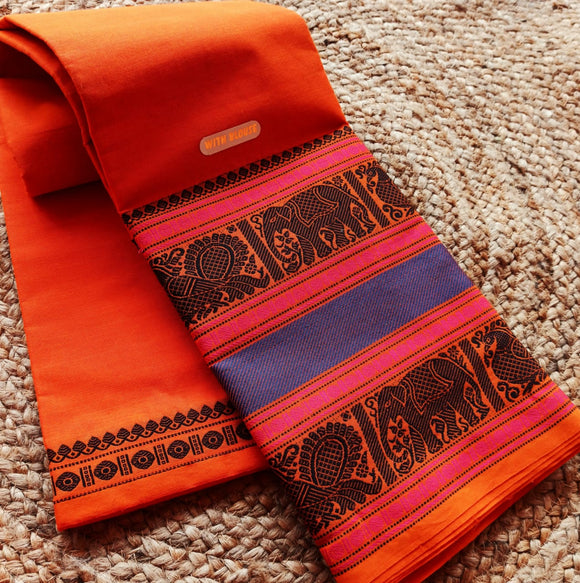 SB KANCHI ORANGE COTTON SAREE WITH RUNNING BLOUSE AND BIG BORDER-SNEHAKCS001O