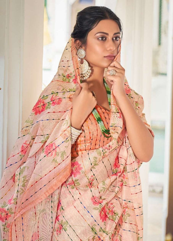 PEACH SHADE ELEGANT COTTON SILK SAREE FOR WOMEN -NIRM001P