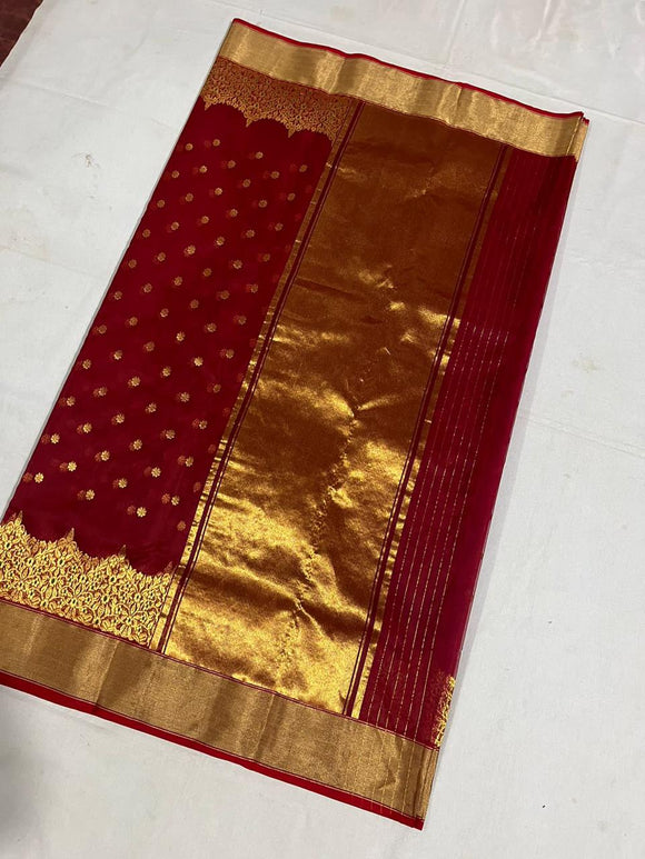 SUNEHRI , AUTHENTIC ORIGINAL ELEGANT RED KATAN SILK SAREE FOR WOMEN -SA001RKSS