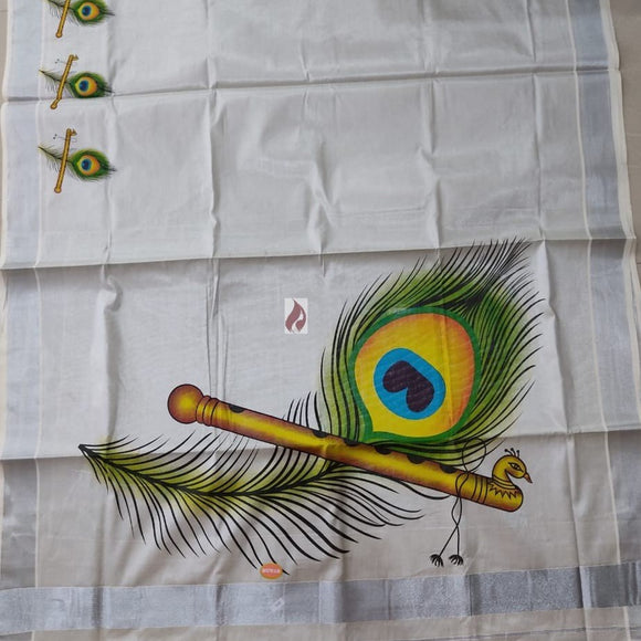 Mayilpeeli, Silver Tissue Sarees With Big Mural Prints On The Pallu And Small Murals Along The Borders-CFSMS001MP