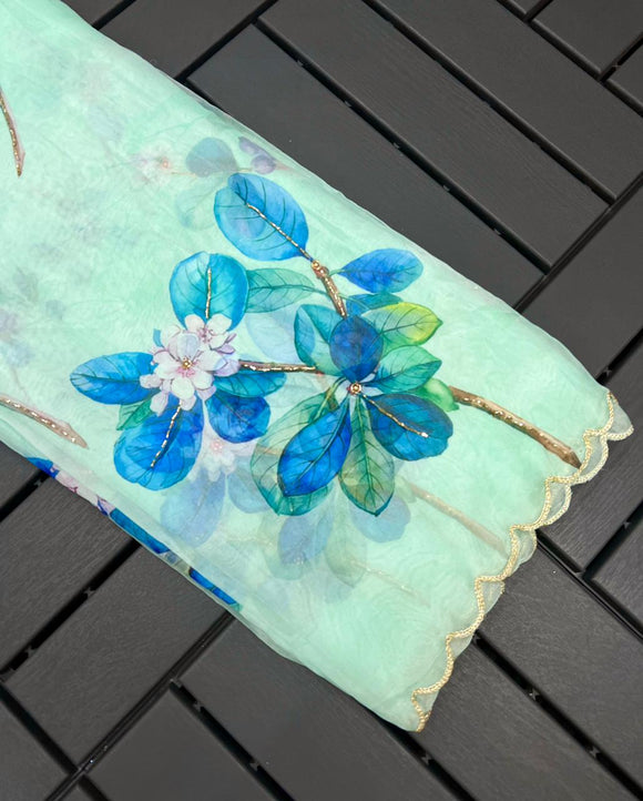 Pastel Green Shade Organza Handwork Saree for Women-SSS001POPG