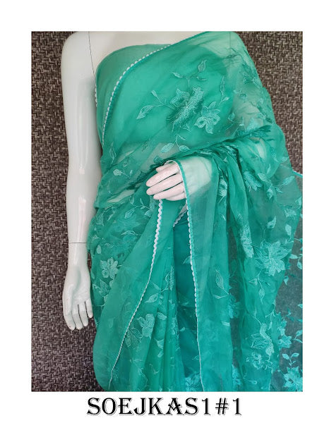 Agave Green Embroidered Organza Saree with Plain Blouse Piece -KIA001OZ