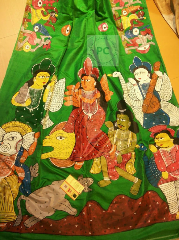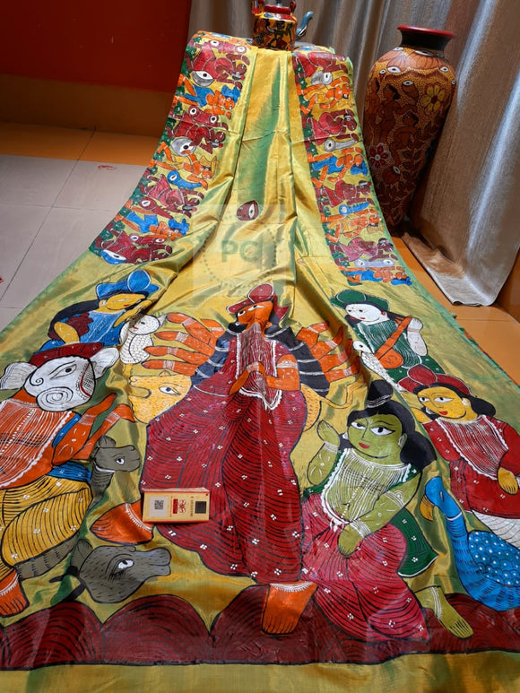 Patachitra on Pure Hand Weaved Sonamukhi Silk Saree With Silk Mark-PS0220360R