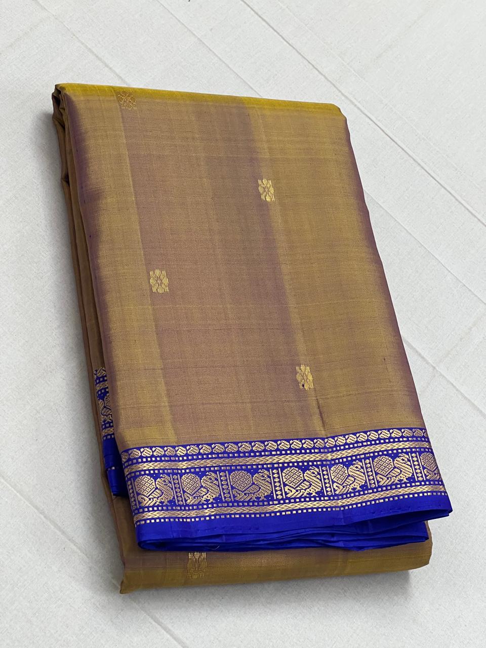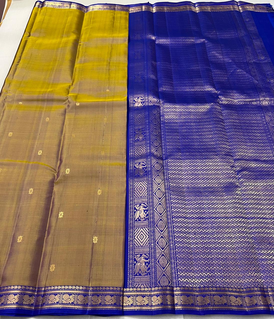 Revathy , Traditional Mustard Green and Indigo Blue Shade Combination Kanjeevaram Silk Saree for Women -SACHI001MI