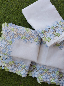 ANGELINA , Noil Kota Full border Cutwork White saree with blouse -KIA001CW