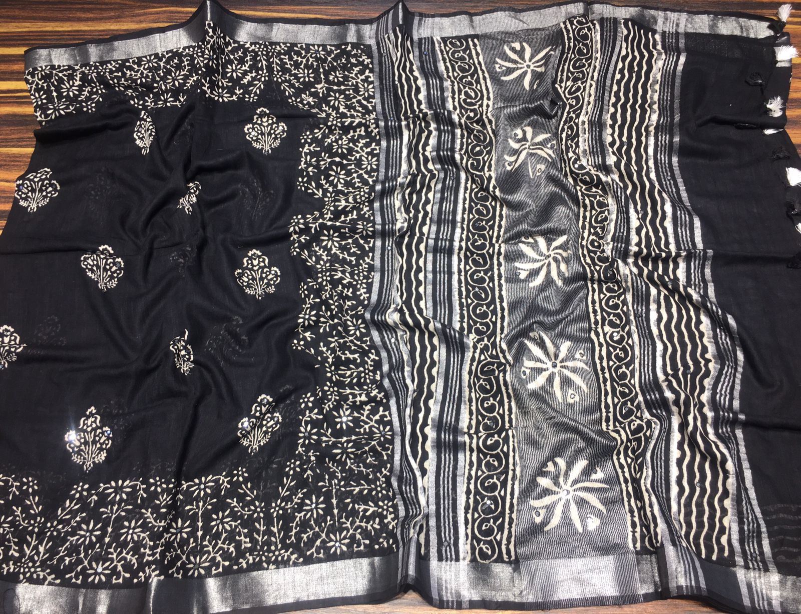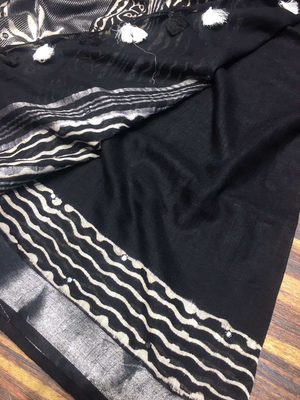 Black Fancy Soft Cotton Saree with Blouse -SACHI001BW