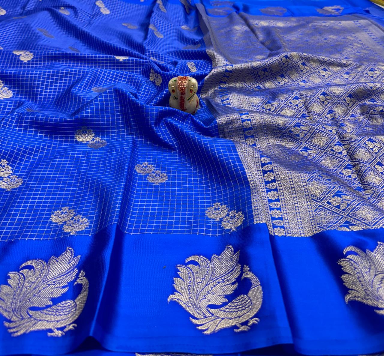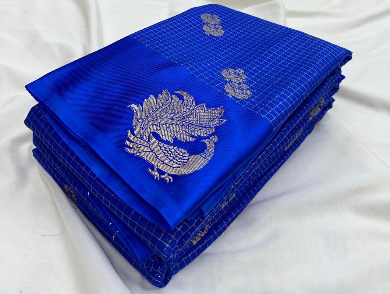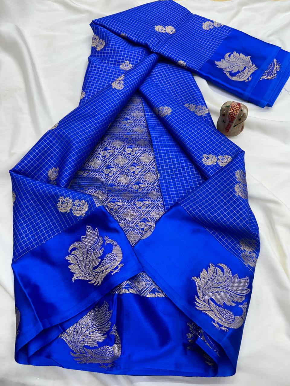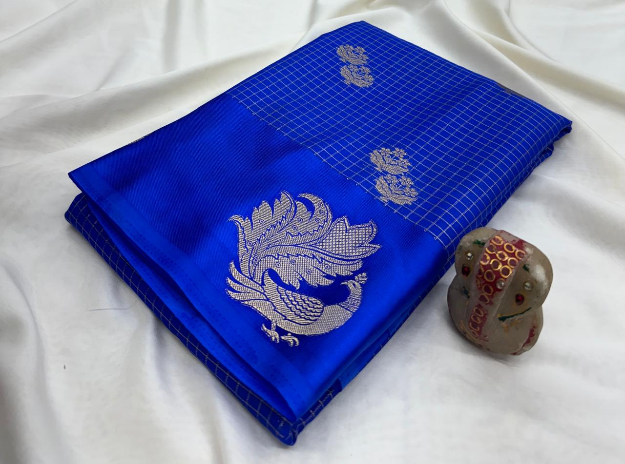 Blue Pearl , Premium Blue Shade Chekered Soft silk Saree for women -DIA001BS
