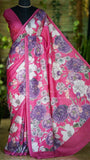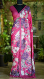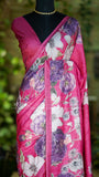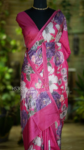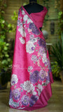 Blushing Blooms , Chapa Tussar Silk Saree with Vibrant Rose Print-FOF001TC