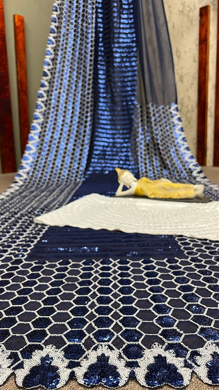 SAREE : Georgette Double Sequins Work Saree with Cutwork
