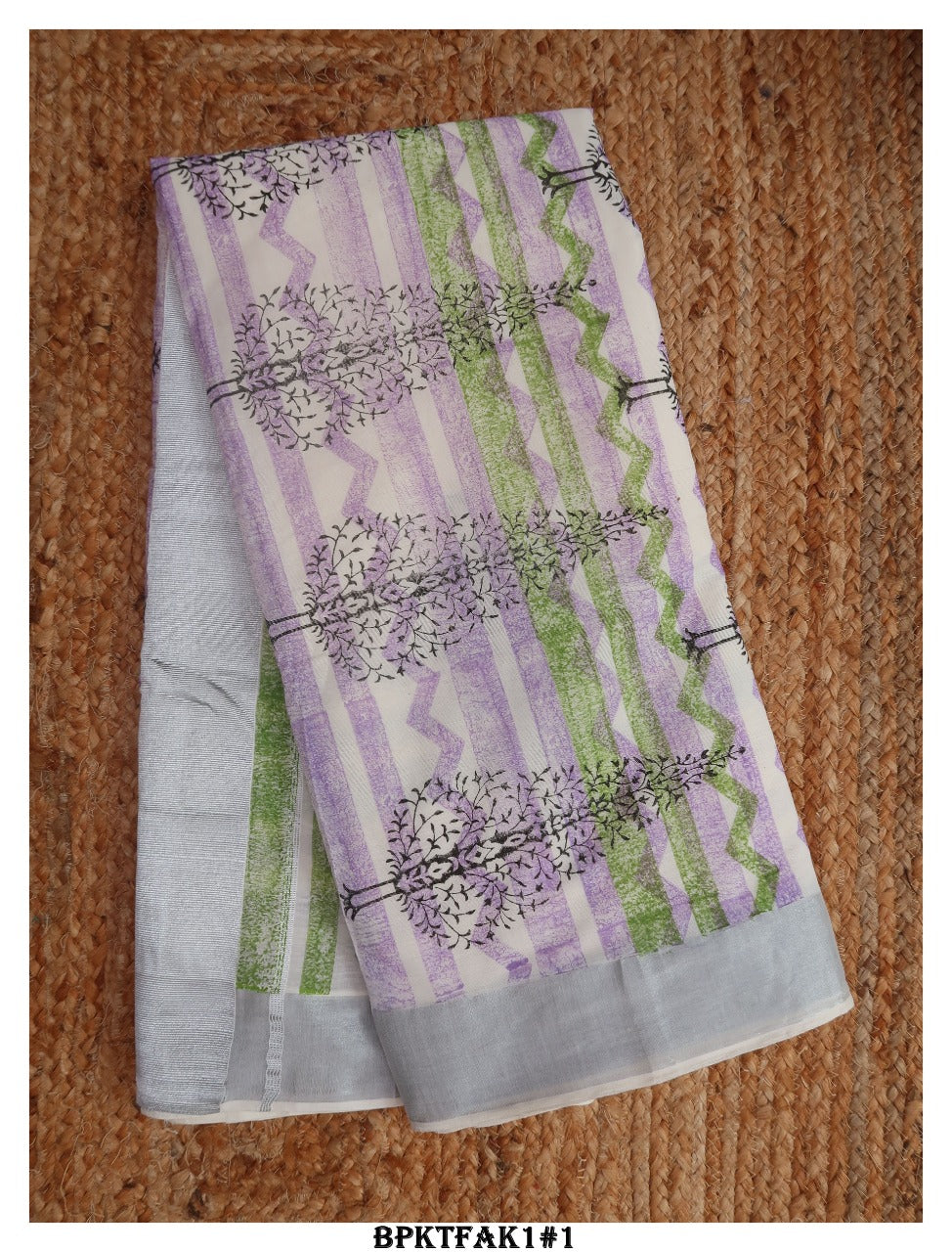 ANJANA, ELEGANT HAND BLOCK PRINTED KERALA COTTON SAREE WITH GOLD ZARI -KIA001AJ