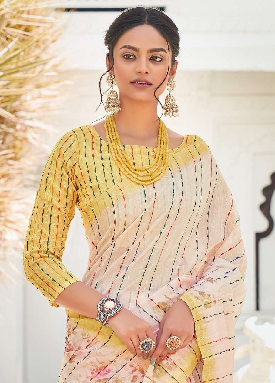 LEMON YELLOW SHADE ELEGANT COTTON SILK SAREE FOR WOMEN -NIRM001L