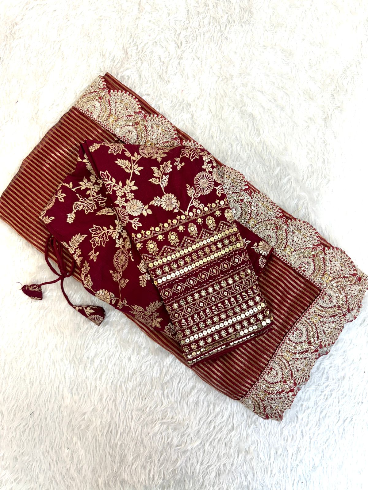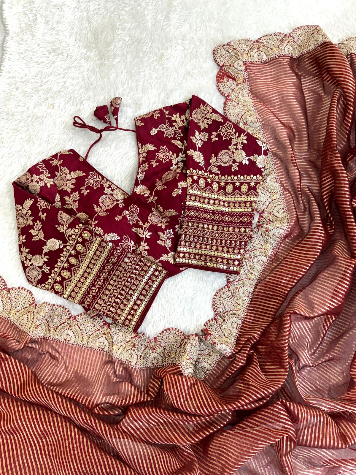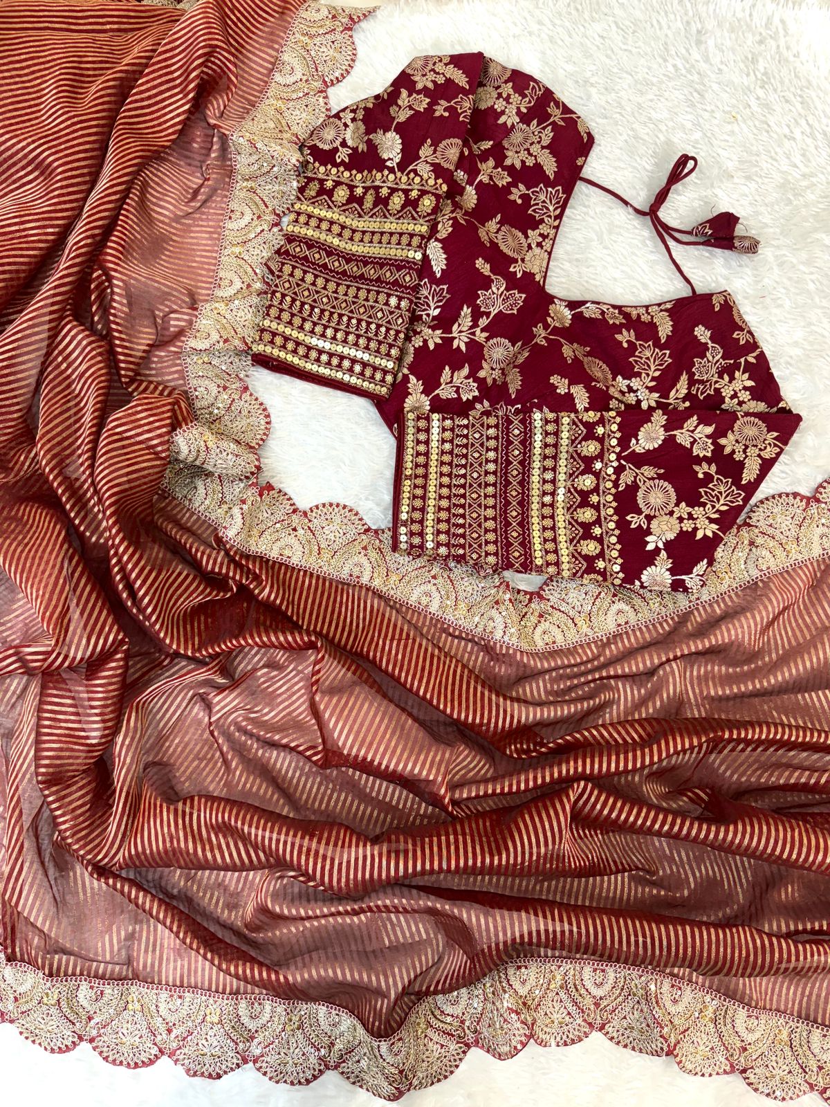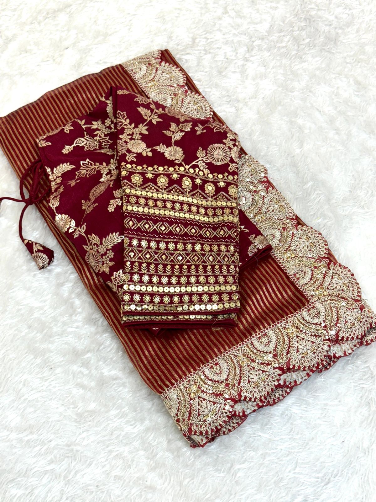 Premium Organza Tissue With Heavy Sequins Coding Work Border Saree -SSS001MS