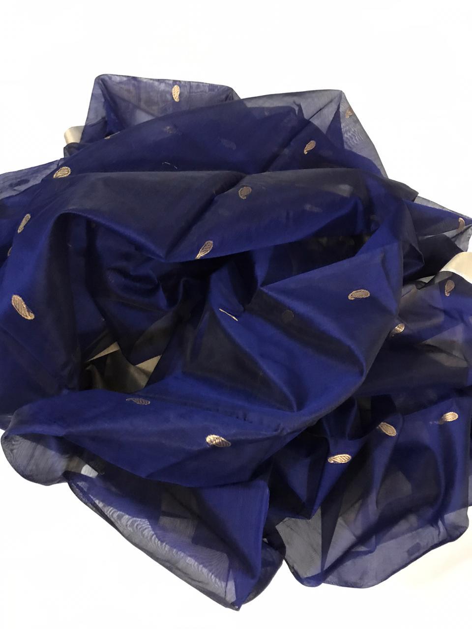 DEEP BLUE PAISLEY DESIGNER CHANDERI SILK COTTON SAREE FOR WOMEN-SADBCS001