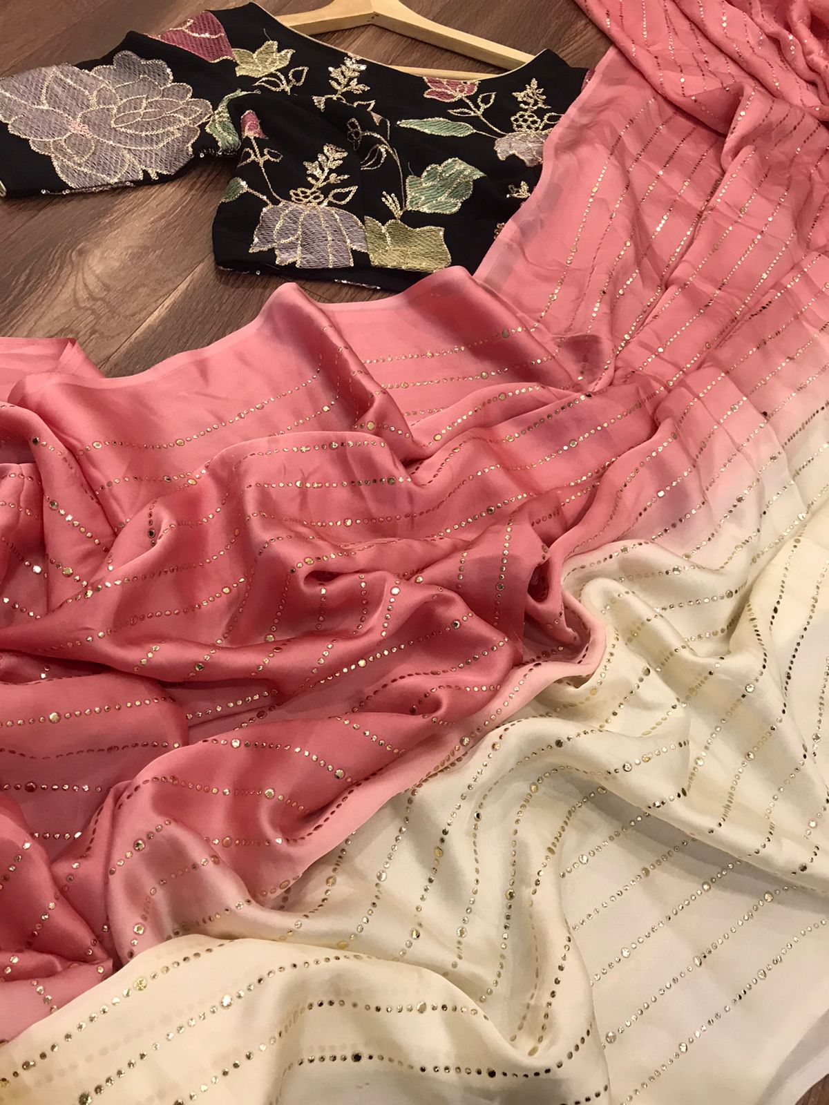 Pure satin crepe swarvoski work sarees with ready to wear blouse