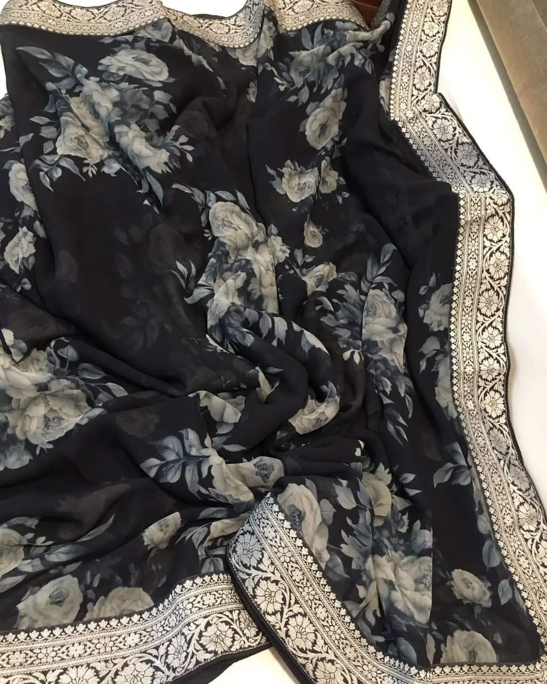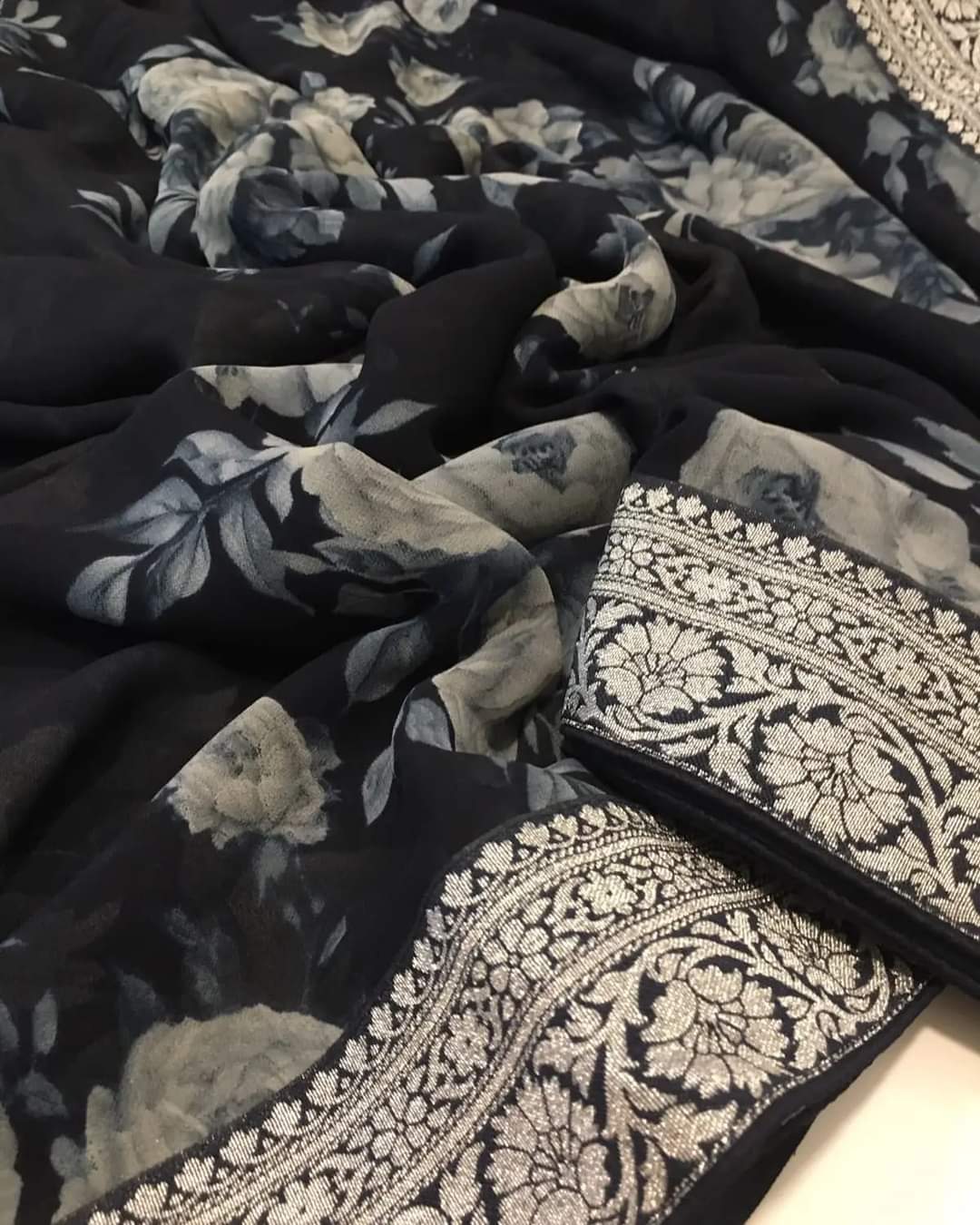 Designer Georgette Digital floral print Saree with soft Georgette blouse with border-KRISH001DB