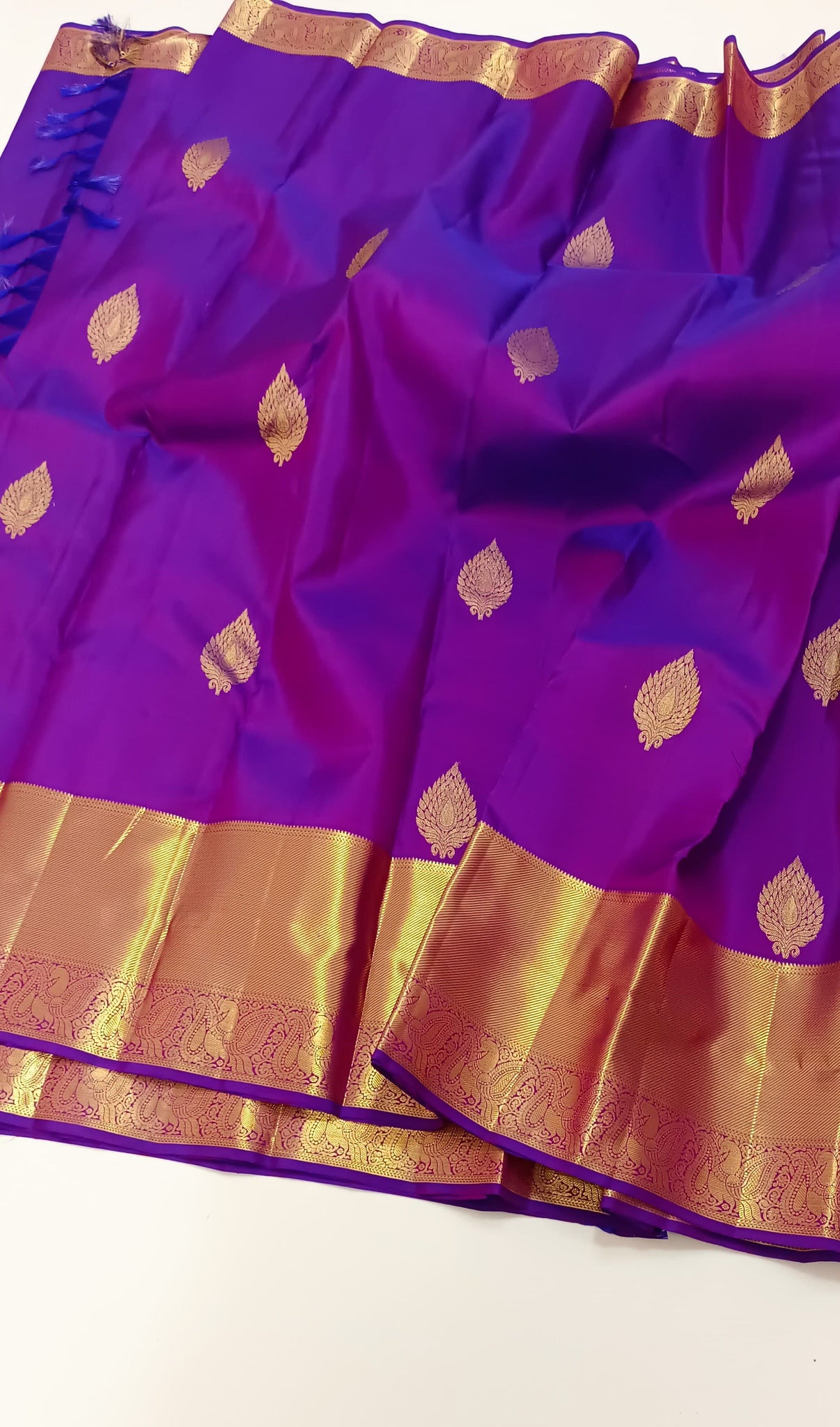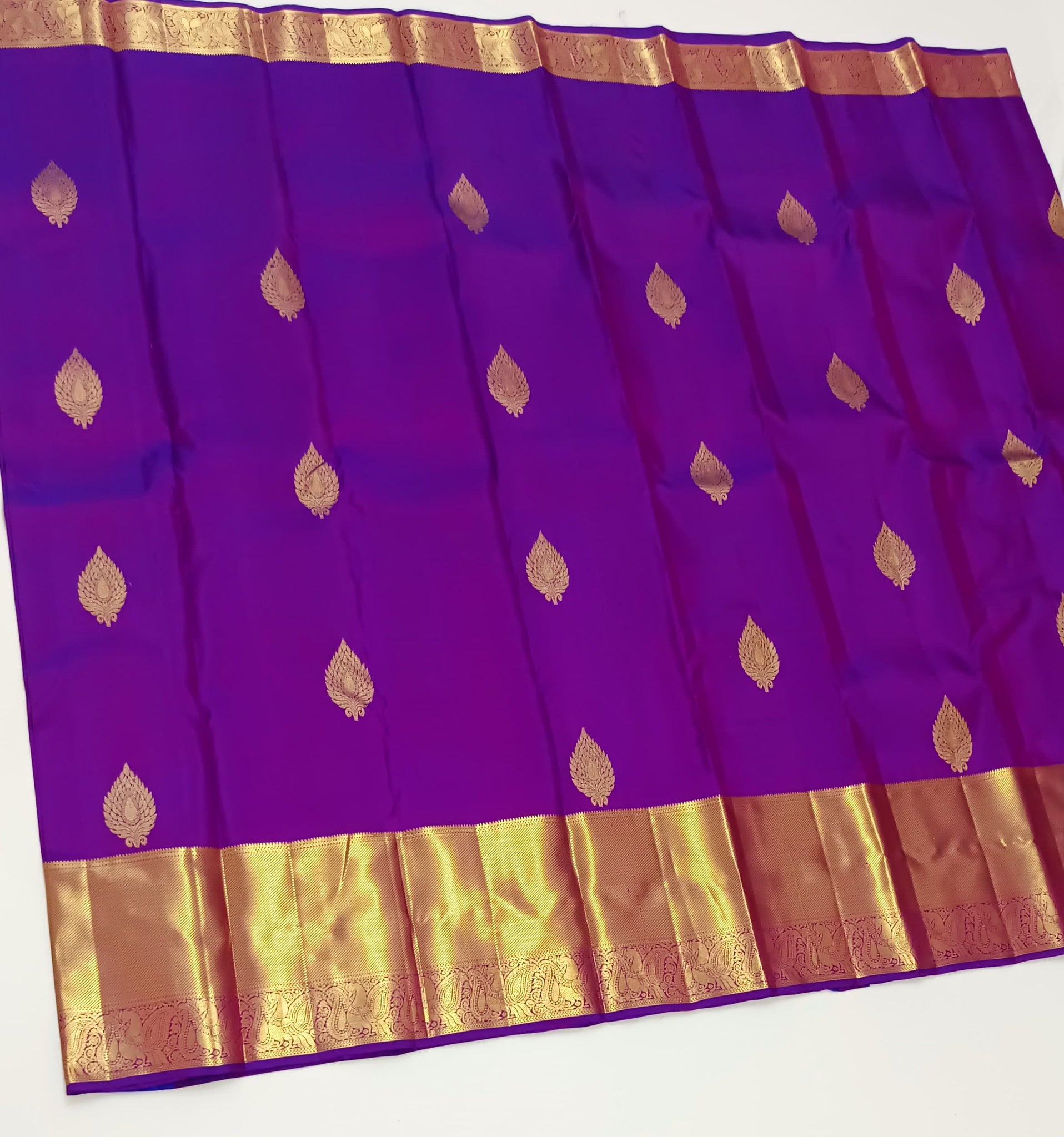 This is a one of the traditional design and colour combinations, Kanchipuram pure silk hand woven by excellent weavers with beautiful Borders and Rich pallu