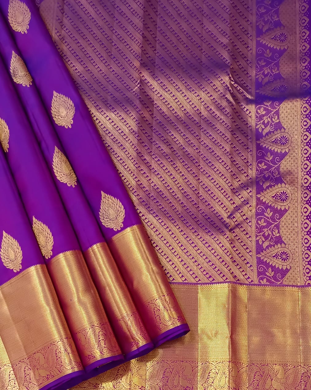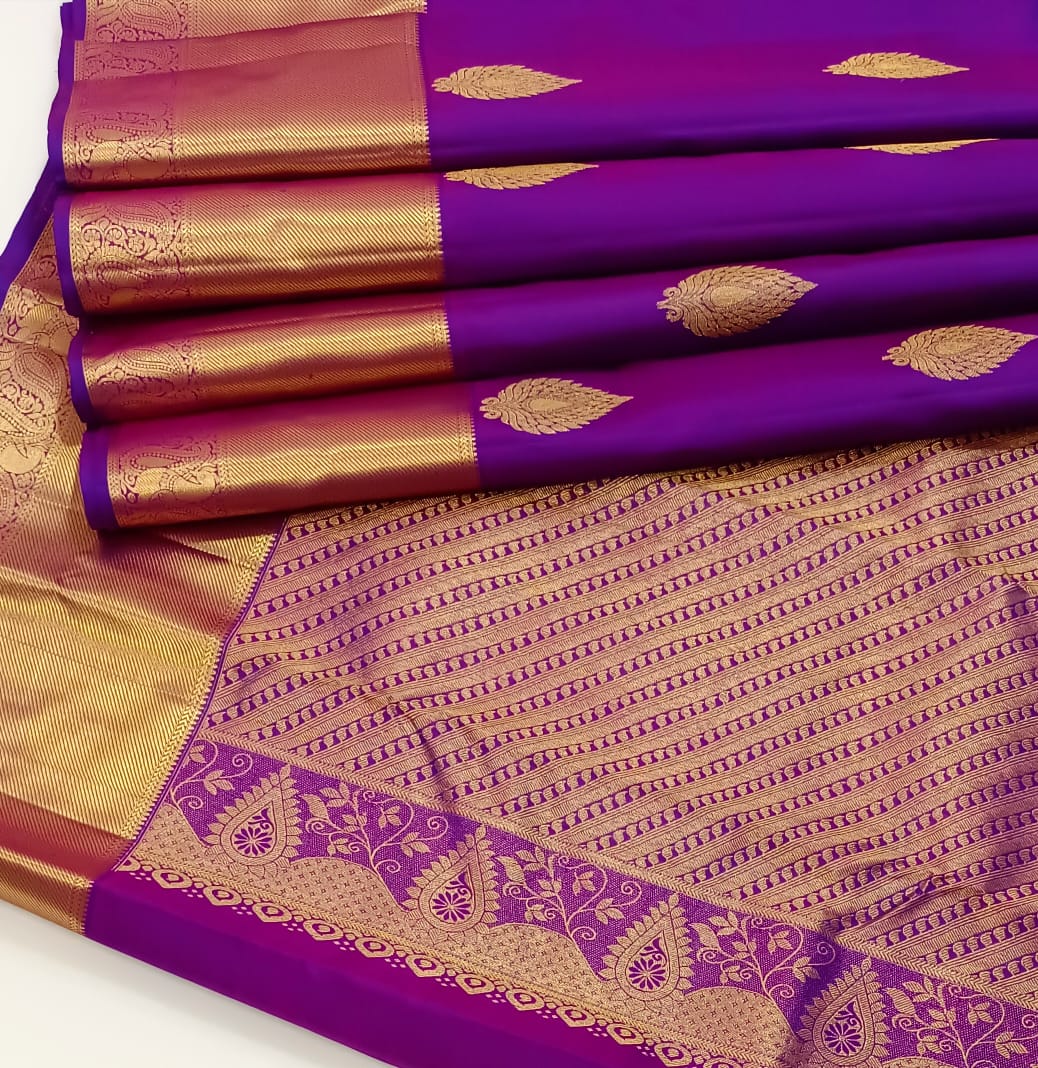 Durgamoha , Majenta shade Kanjivaram Silk Saree with Golden Zari and Motifs-SACHI001MS