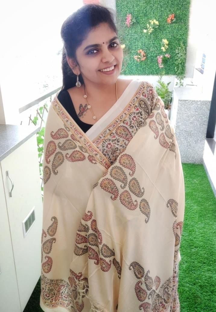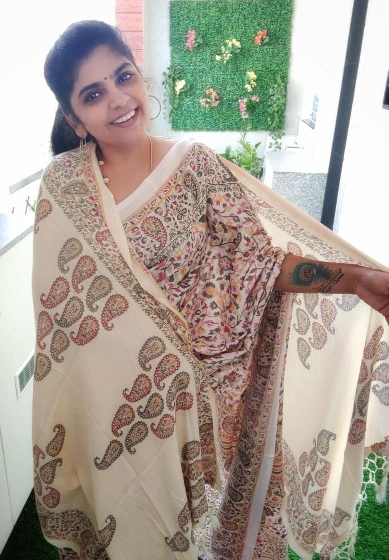 Elegant Kalamkari Design Pashmina Saree with matching Shawl for Women -GARI001PSS