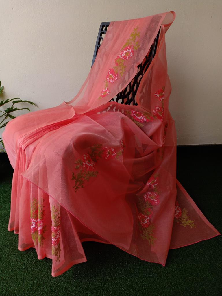 Embroidered Organdy Saree without Blouse-KIAOS001