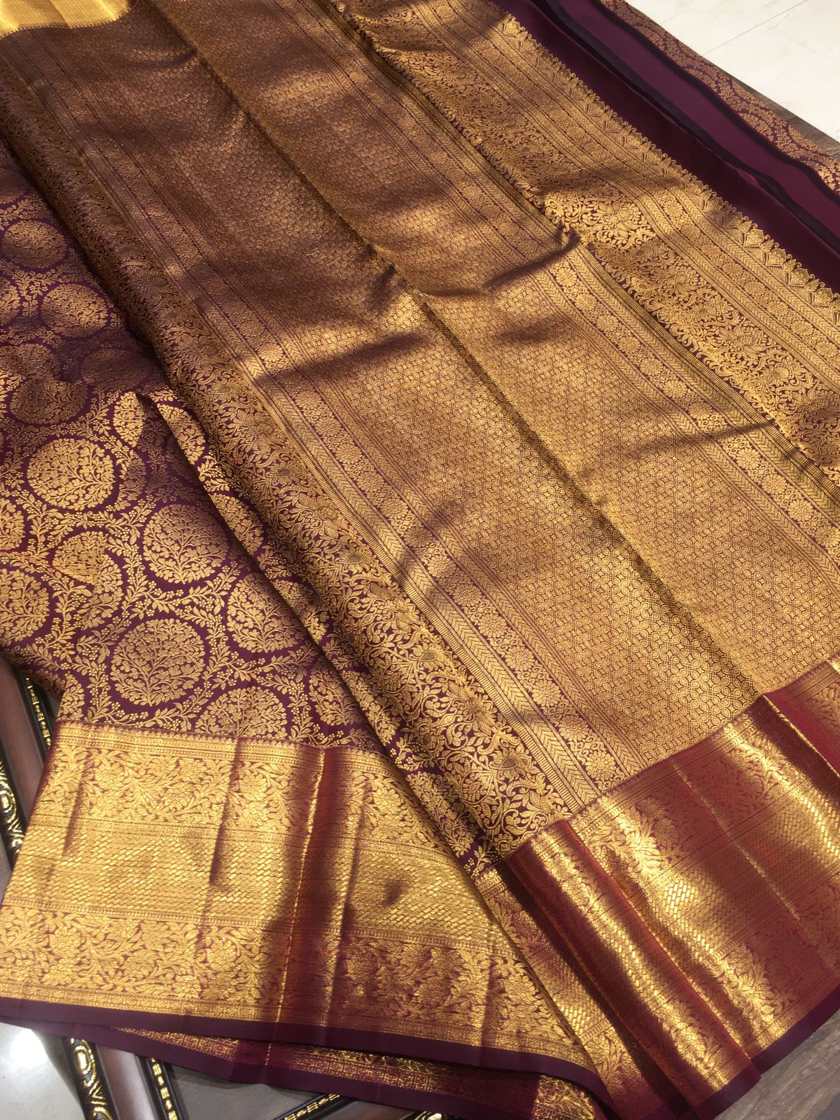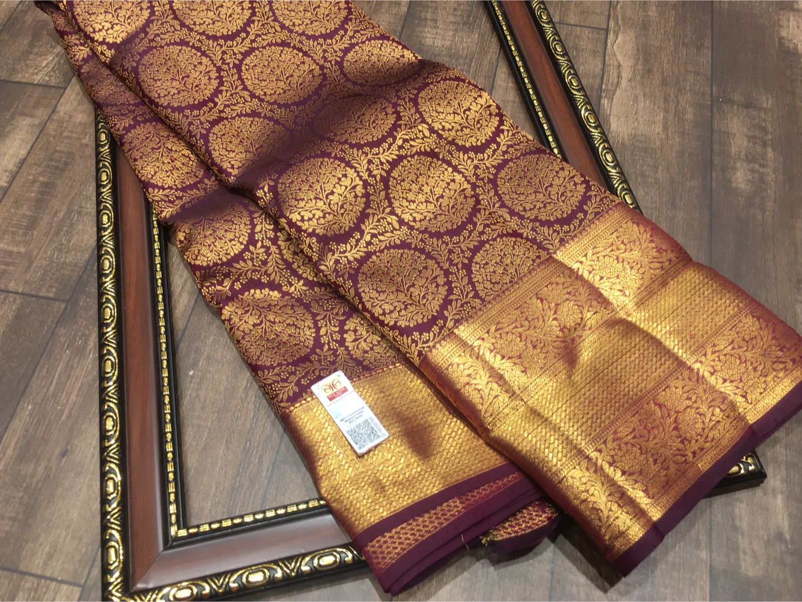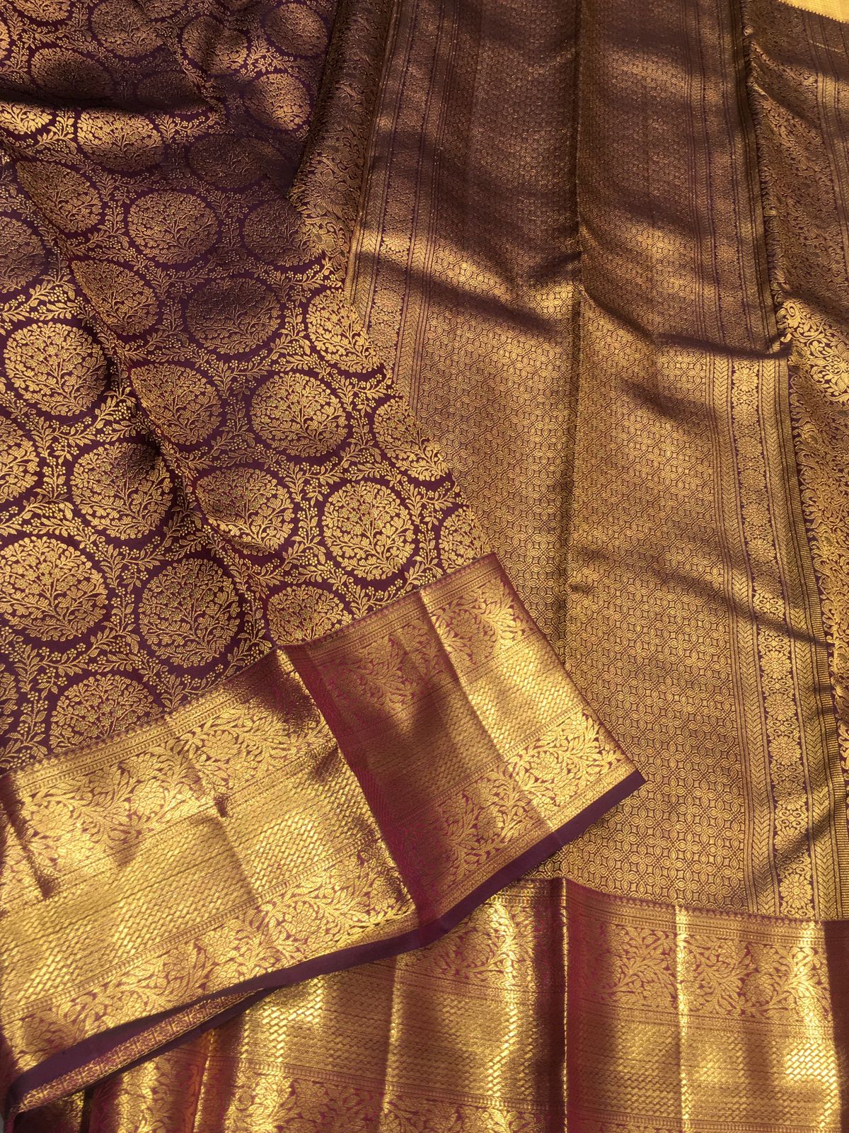 # Kalyani – Elegant Handloom Kanjeevaram Silk Saree Experience timeless sophistication with this Silk Mark certified Kanjeevaram silk saree, meticulously handwoven to showcase the finest traditions of South Indian textile craftsmanship. The Kalyani design features rich, lustrous silk with intricate patterns that reflect authentic weaving heritage. Each saree is a testament to quality—certified for genuine silk content and durability. Perfect for weddings, festivals, and formal occasions, this piece combines elegance with the comfort of natural fiber. The handloom construction ensures every saree is unique, making it an investment in both style and cultural artistry.
