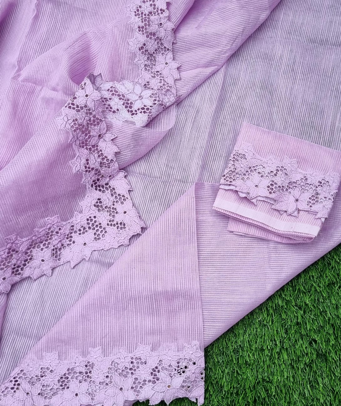 Lilly Lover , Lilac Shade Kota cutwork work saree with blouse for Women for Christmas 2025-DEEP001LS