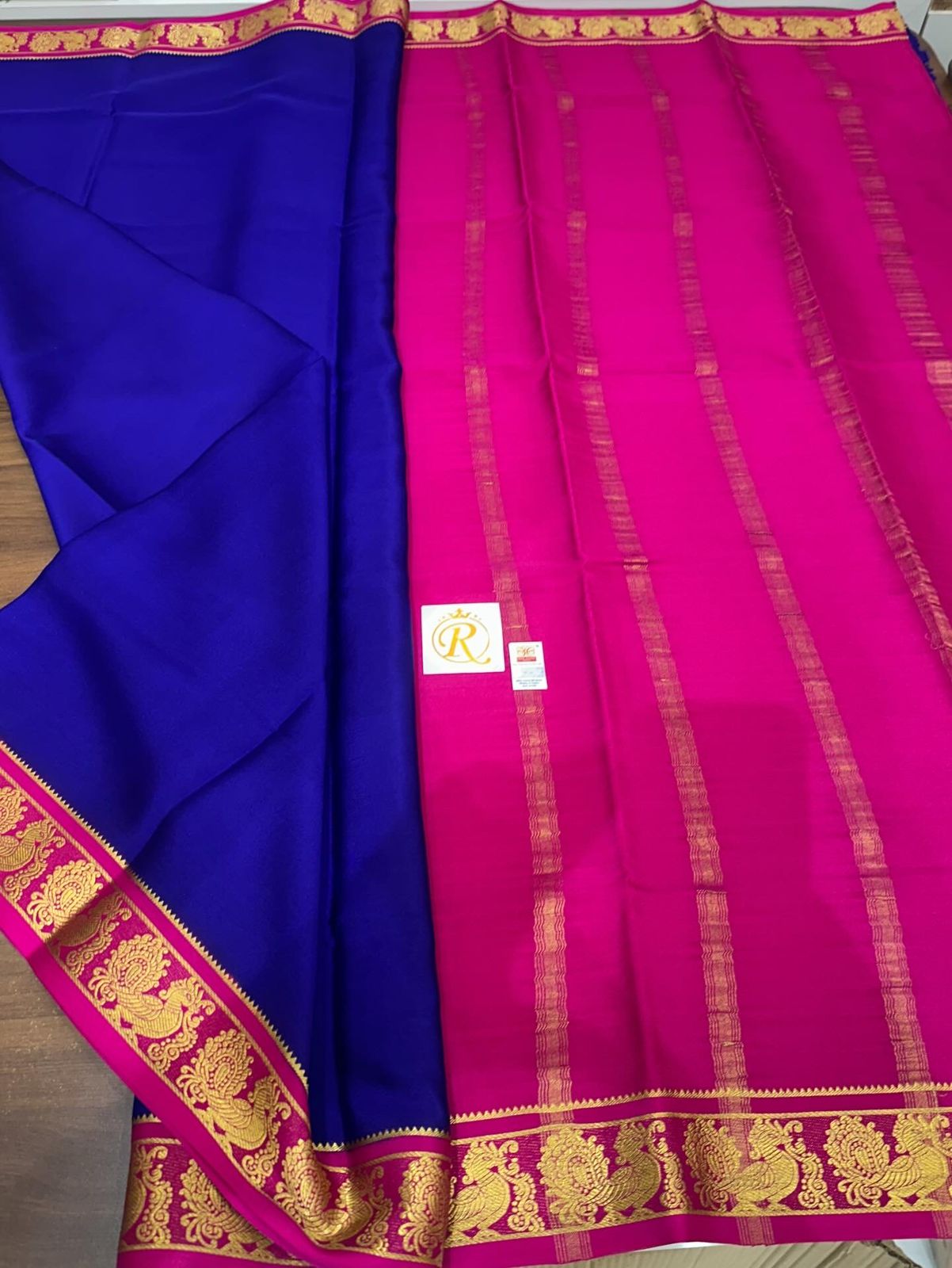 Mayuri , elegant Blue and Pink Combination Mysore Crepe Silk Saree for women -SACHI001BP