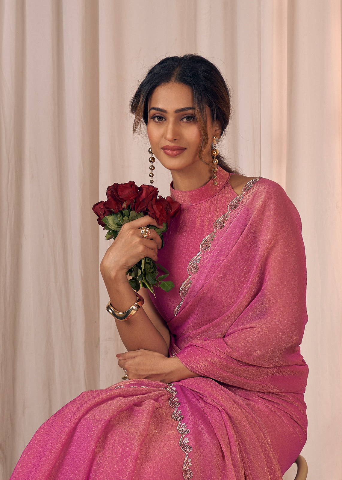 Mehek Pink Beautiful Georgette Saree for women -OM0001MSB