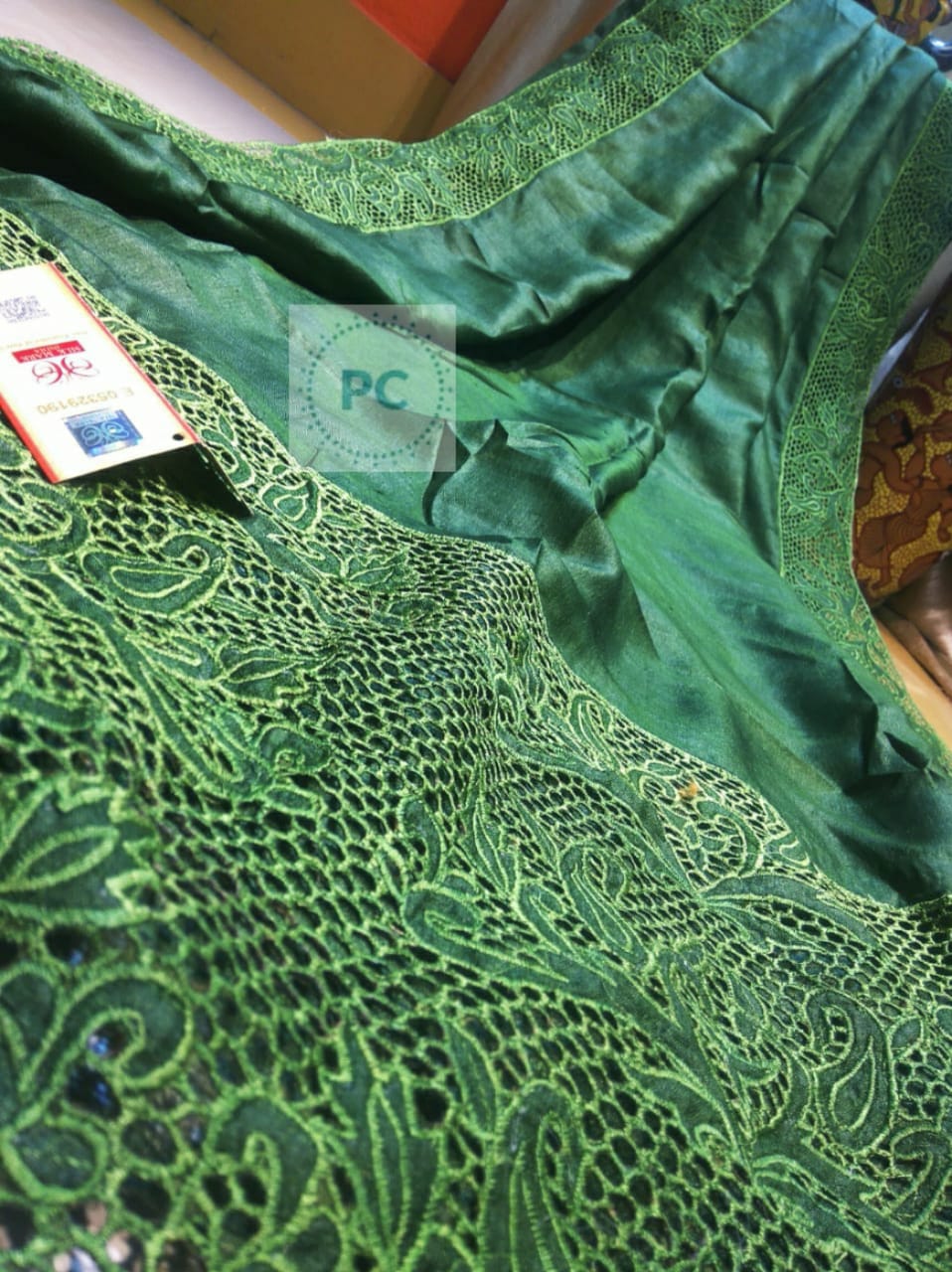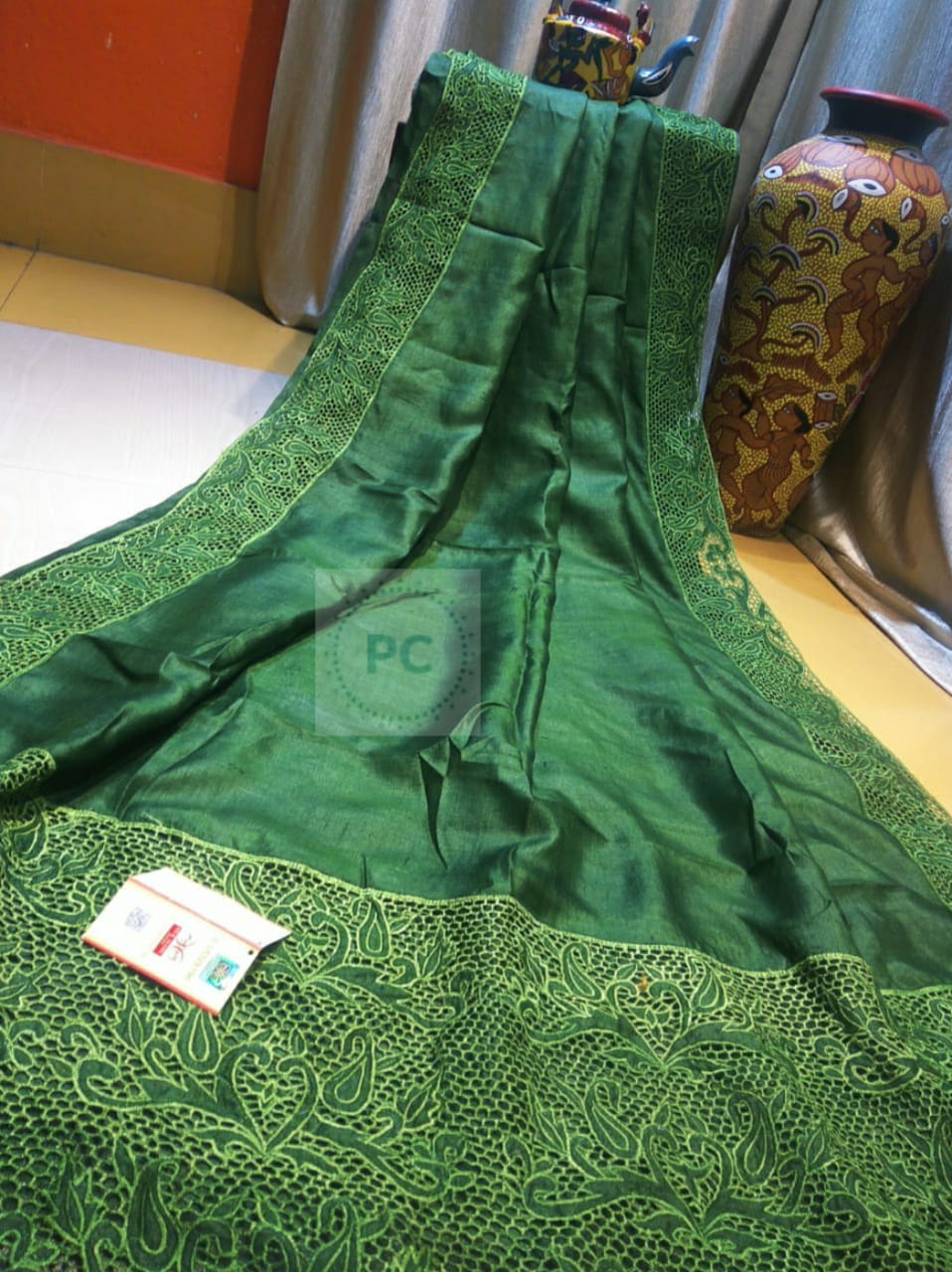 Christmas Special , Elegant Chanderi saree with matching blouse, featuring intricate cutwork floral detailing-DEEP001CS