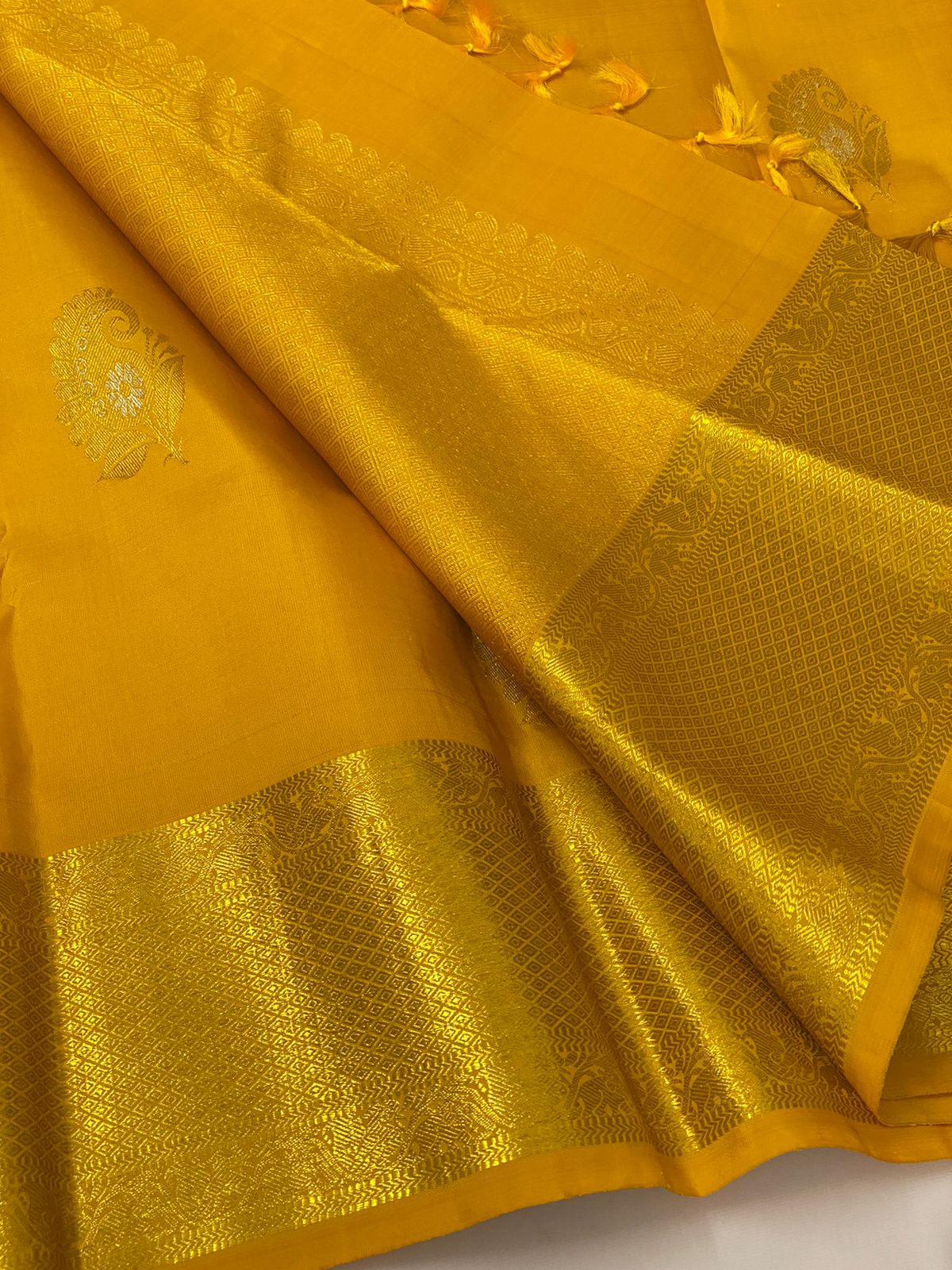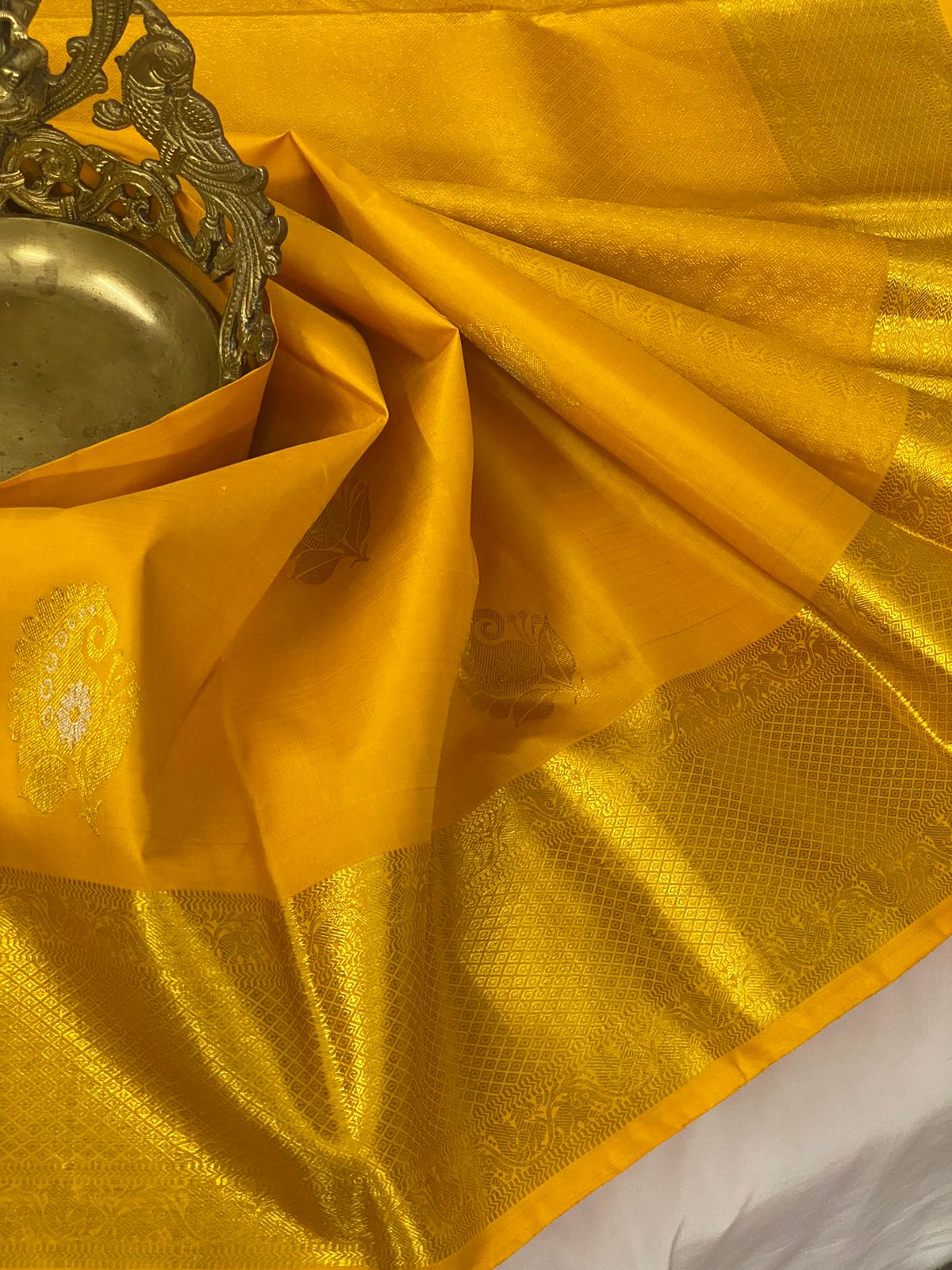 PADMINI , GOLDEN YELLOW SHADE KANJIVARAM PURE SILK HANDLOOM WITH 2 GRAM GOD ZARI SAREE FOR WOMEN -PDS001GY