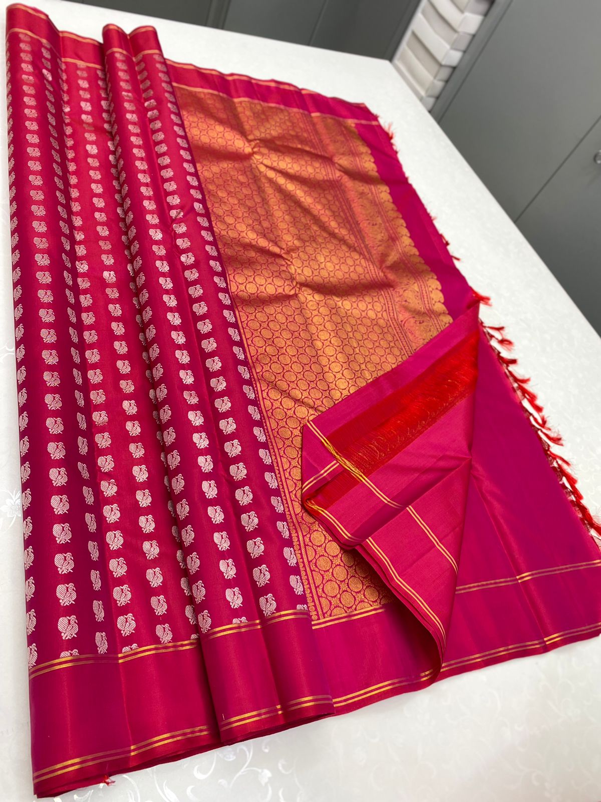 Kanchipuram Pure Silk Handloom saree with 1gram Pure Zari .