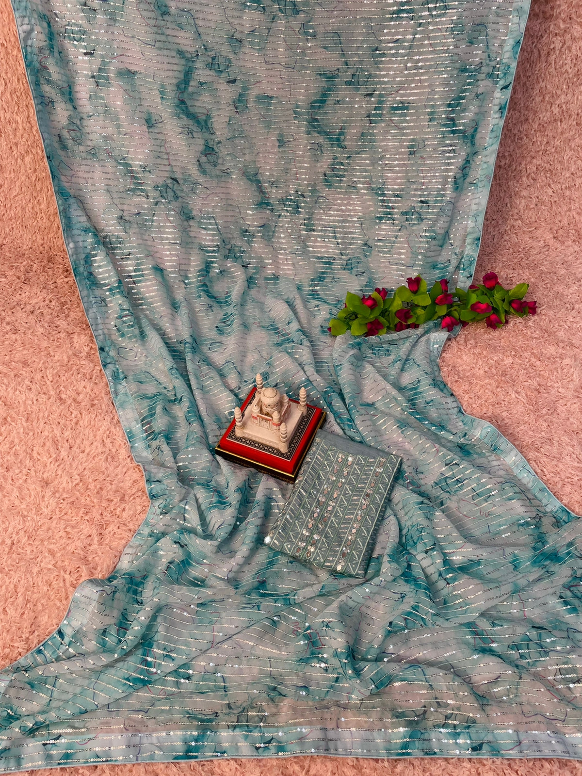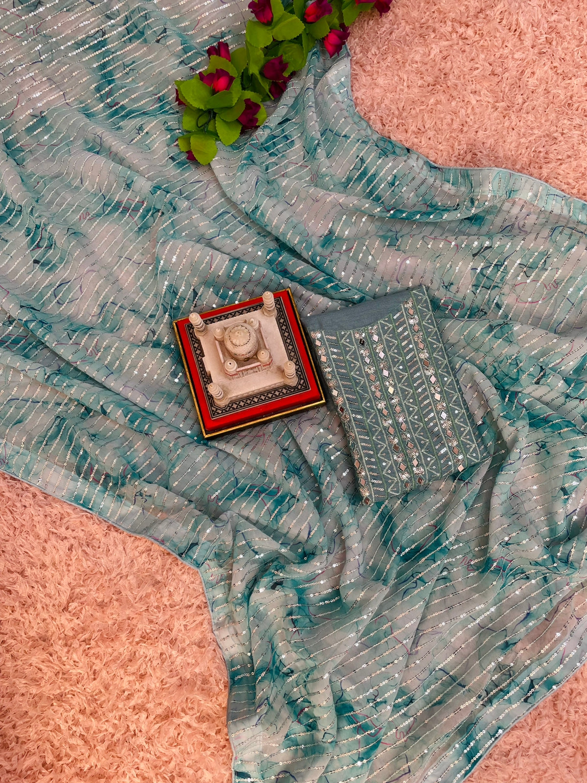 Work:- DIGITAL WITH 3mm SEQUINS EMBROIDERY WITH COTTON THREAD ALL OVER WORK / 5.5 mtr