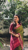Christmas Special , Elegant Chanderi saree with matching blouse, featuring intricate cutwork floral detailing-DEEP001CS