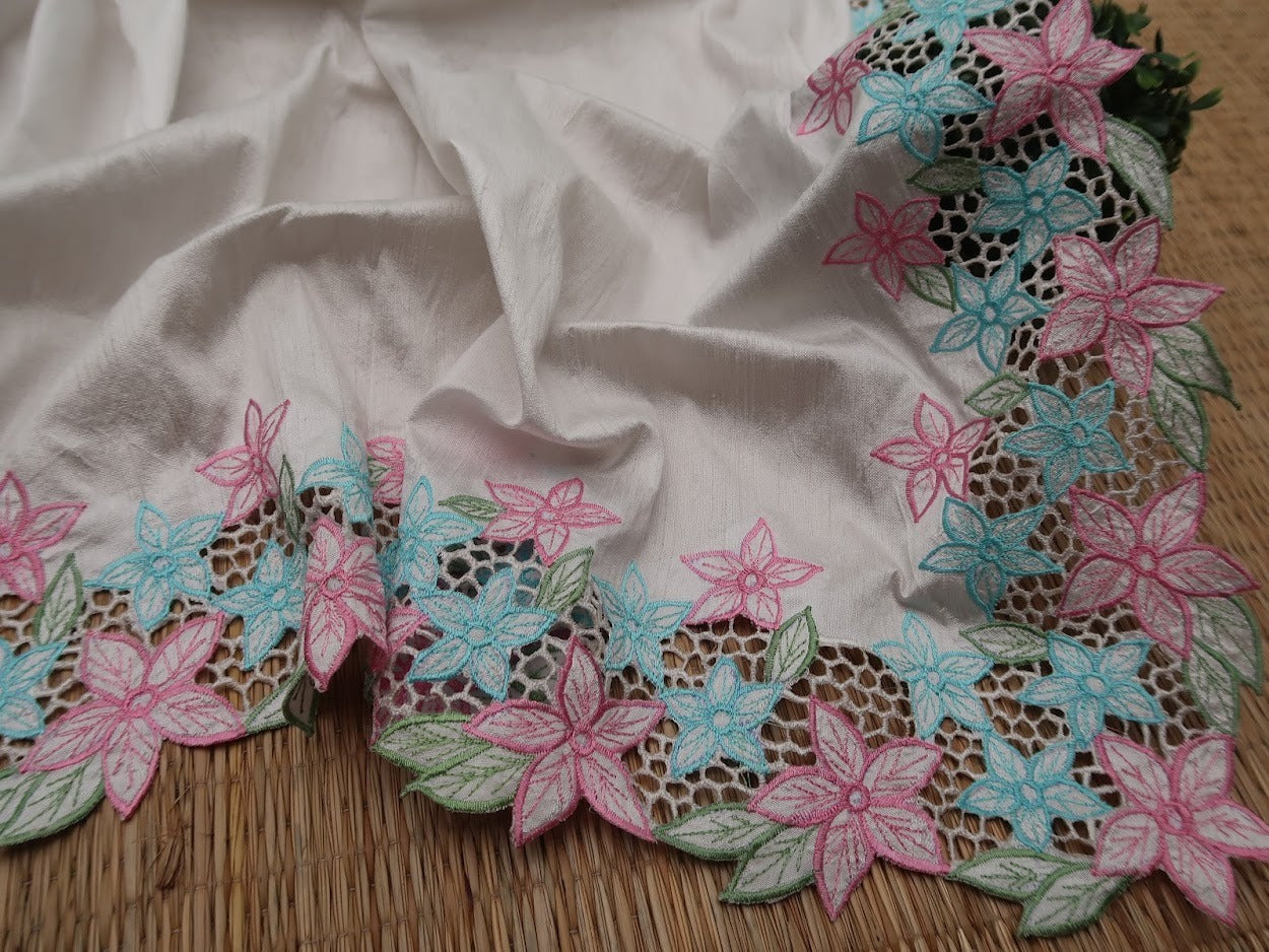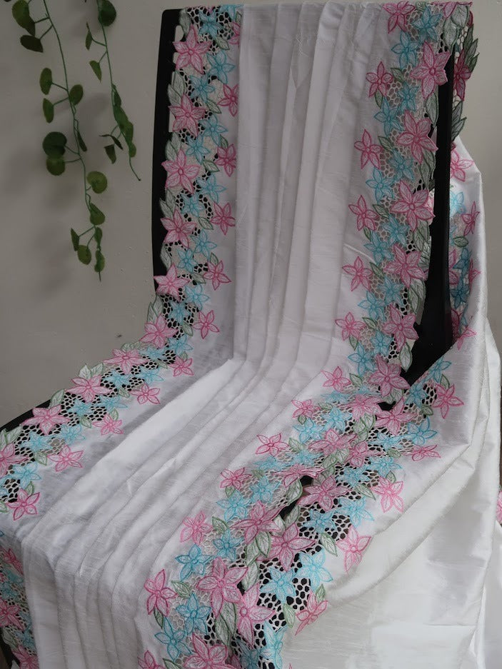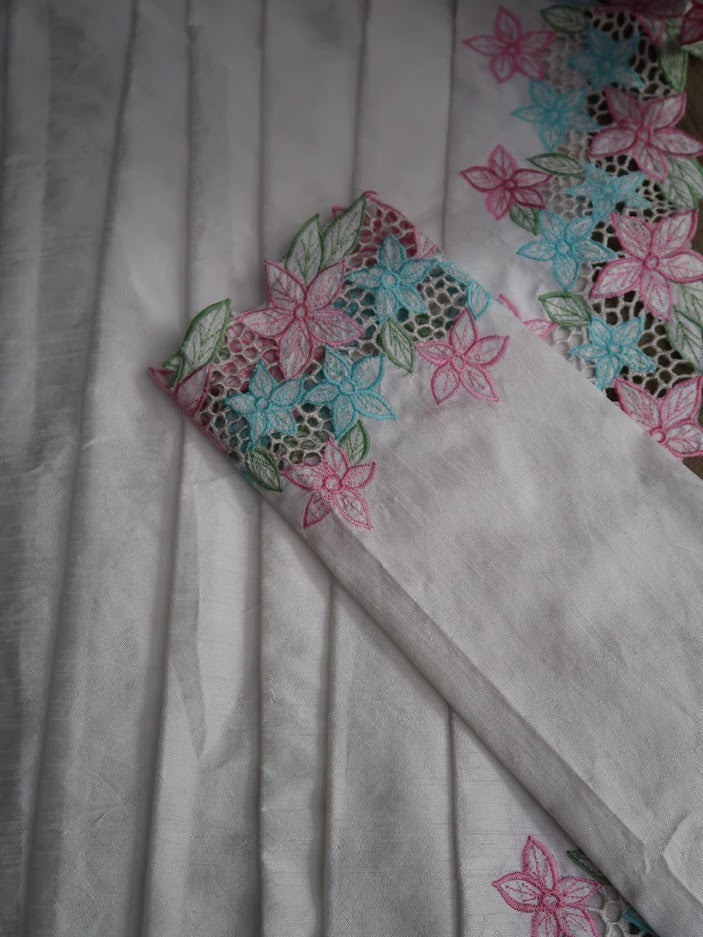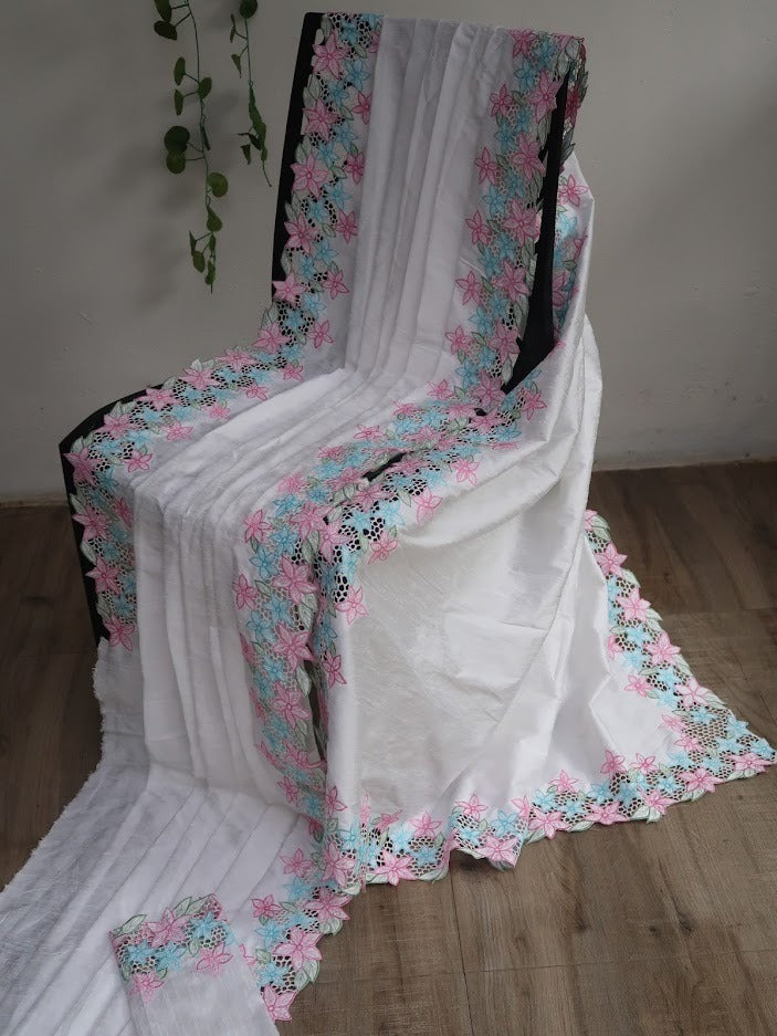 SHYAMA, Cutwork on Semi Raw silk Saree with Blouse Piece-KIA 001RSSW
