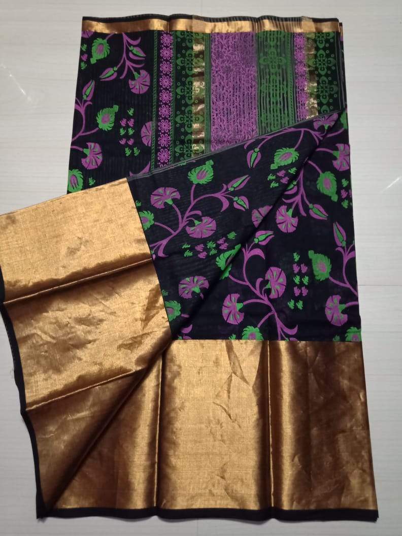 NEW UPPADA COTTON SAREE WITH FLORAL DIGITAL PRINT WITH HEAVY GOLD ZARI-DPUCS001