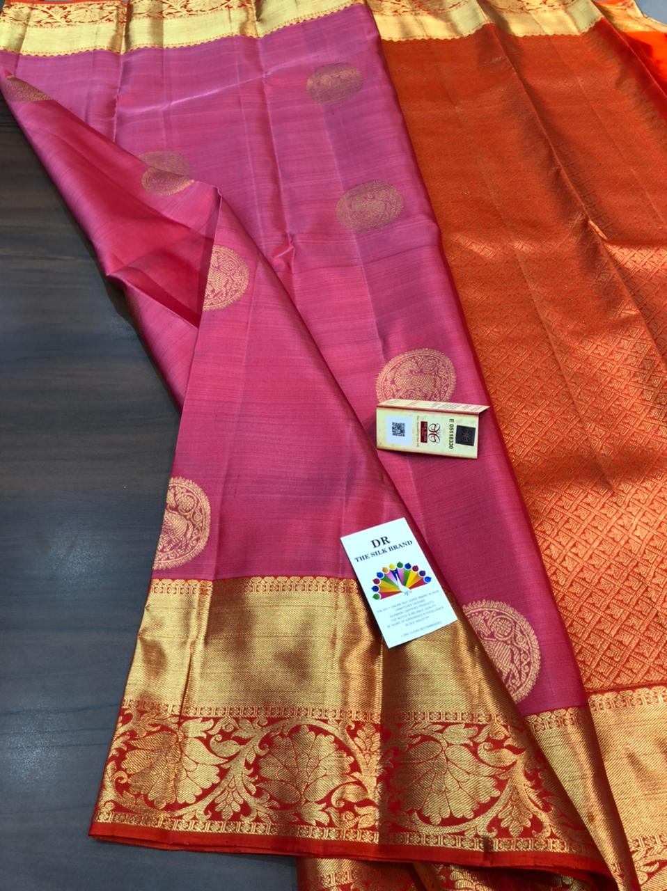 VIBRANT COMBINATION OF PINK AND ORANGE  PURE SILK BRIDAL SAREE -PDSBSS001