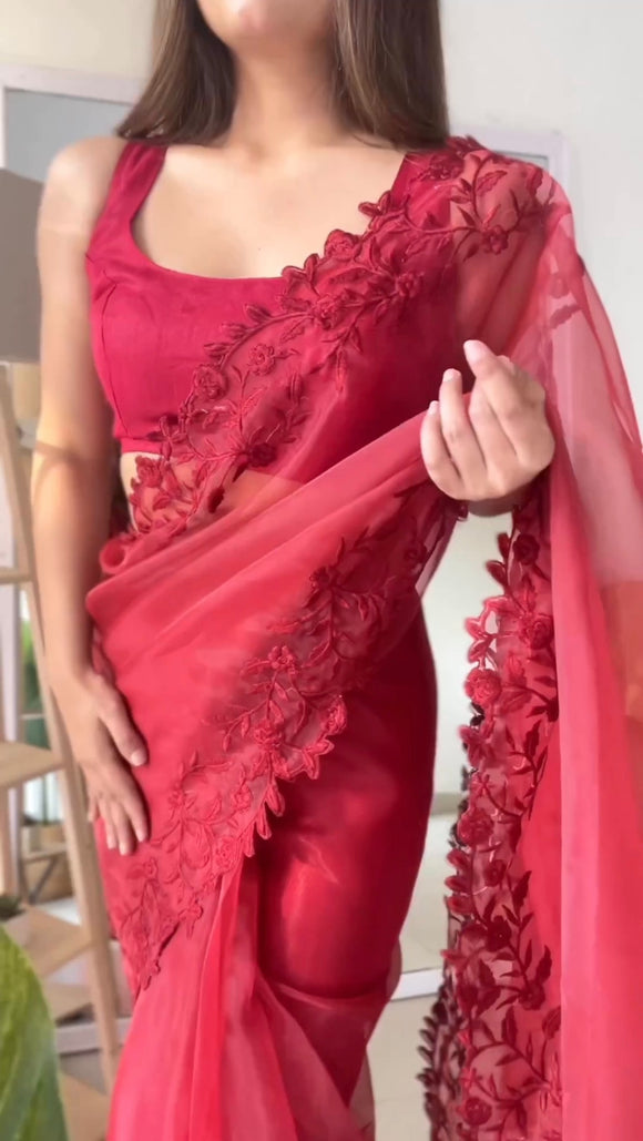 Red New Ready to Wear Saree for Women -SSS001RWSR